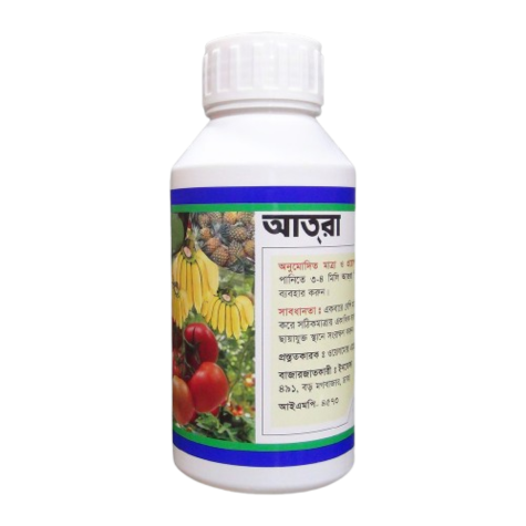 ব্যবহারমাত্রা: প্রতি লিটার পানিতে ৩–৪ মিলি আত্রা মিশিয়ে স্প্রে করুন