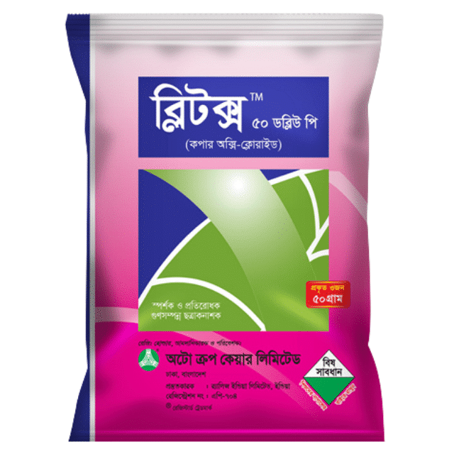ব্লিটক্স™ ৫০ ডব্লিউ পি একটি শক্তিশালী স্পর্শক এবং প্রতিরোধক ছত্রাক ও ব্যাকটেরিয়ানাশক। এতে প্রতি কেজিতে ৫০০ গ্রাম সক্রিয় উপাদান হিসেবে কপার অক্সি-ক্লোরাইড রয়েছে, যা ফসলের রোগ দমনে অত্যন্ত কার্যকর।