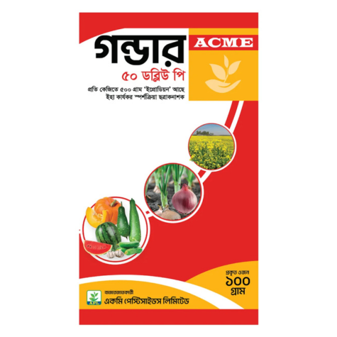 প্রতি লিটার পানিতে ২ গ্রাম গন্ডার ৫০ ডব্লিউপি ভালোভাবে মিশিয়ে ফসলে সম্পূর্ণভাবে স্প্রে করুন।