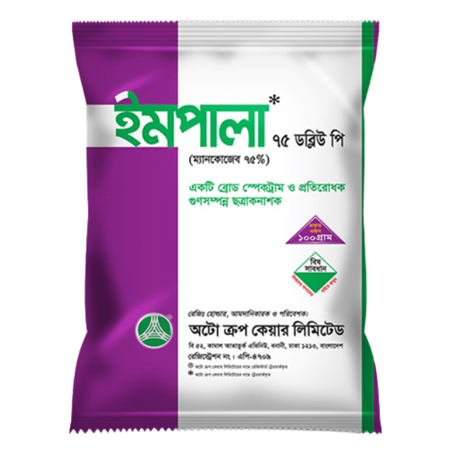 ইমপালা® ৭৫ ডব্লিউ পি হলো একটি উন্নত মানের ব্রোড স্পেকট্রাম ছত্রাকনাশক, যা ফসলের রোগ প্রতিরোধে কার্যকর ভূমিকা পালন করে। এতে প্রতি কেজিতে ৭৫০ গ্রাম সক্রিয় উপাদান ম্যানকোজেব রয়েছে, যা রোগের আক্রমণ থেকে ফসলকে সুরক্ষিত রাখতে সাহায্য করে।