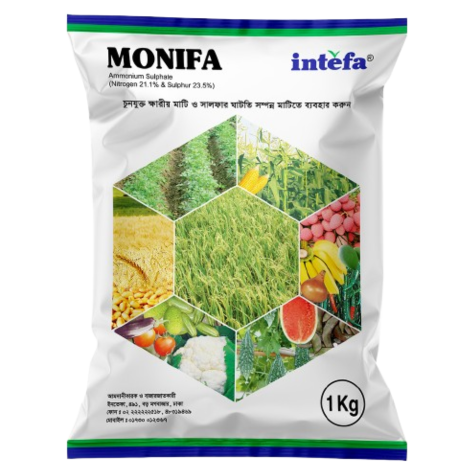মোনিফা একটি বিশেষায়িত উন্নতমানের অ্যামোনিয়াম সালফেট সার, যা ফসলের স্বাভাবিক ফলন থেকে অধিক গুণগতমান সম্পন্ন ফলন নিশ্চিত করে।