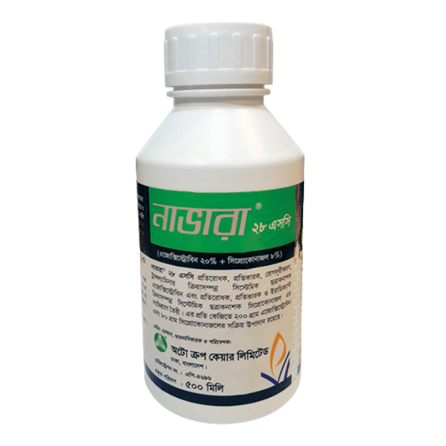 নাভারা ® ২৮ এসসি একটি শক্তিশালী সিস্টেমিক ছত্রাকনাশক যা দুটি কার্যকরী উপাদান, আজক্সিস্ট্রোবিন এবং সিপ্রোকোনাজল এর সংমিশ্রণে তৈরি। এটি প্রতিরোধক, প্রতিকারক, রোগ দূরীকরণ এবং ট্রান্সল্যামিনার ক্রিয়াসম্পন্ন ছত্রাকনাশক, যা রোগের আক্রমণ প্রতিরোধ এবং সৃষ্টিকারী ছত্রাক দূরীকরণে সহায়তা করে। প্রতি লিটারে ২০০ গ্রাম আজক্সিস্ট্রোবিন এবং ৮০ গ্রাম সিপ্রোকোনাজল রয়েছে।