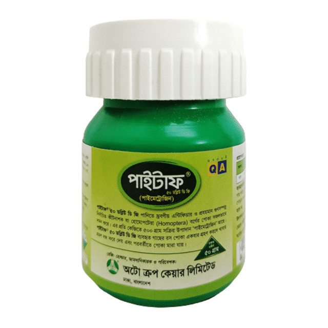 পাইটাফ® ৫০ ডব্লিউ ডি জি একটি উন্নতমানের কীটনাশক, যা স্পর্শক, পাকস্থলীয় এবং অন্তর্বাহী ক্রিয়ার সমন্বয়ে কাজ করে। এটি ধানের জন্য বিশেষভাবে কার্যকর, বিশেষত বাদামী গাছ ফড়িং (BPH) দমন করতে পারদর্শী। প্রতি কেজিতে ৫০০ গ্রাম সক্রিয় উপাদান পাইমেট্রোজিন বিদ্যমান।