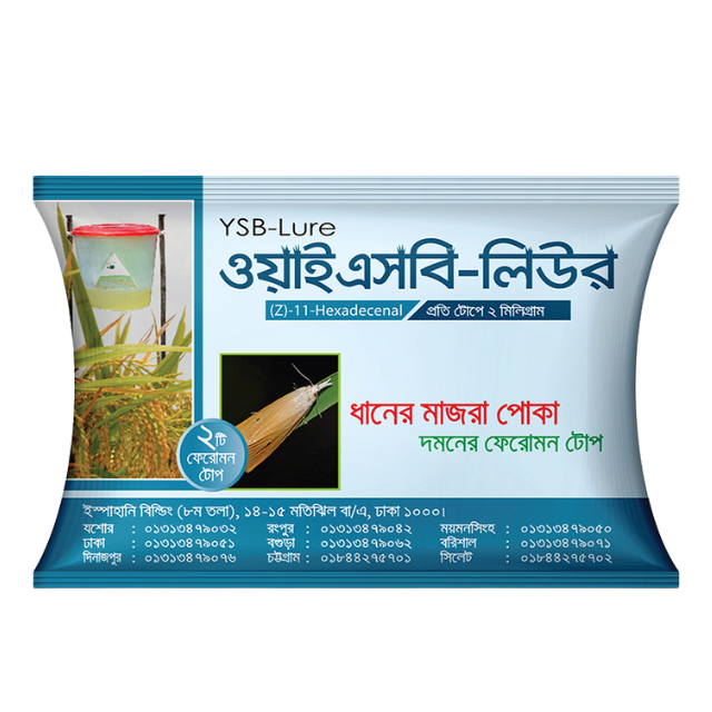 YSB লুর একটি অত্যন্ত কার্যকর ফেরোমন ভিত্তিক প্রলোভন, যা বিশেষভাবে ইয়েলো স্টেম বোয়ার (Yellow Stem Borer) পোকা ব্যবস্থাপনার জন্য ডিজাইন করা হয়েছে। এটি চাষের ক্ষেত্রে রাইস ফসলের ইয়েলো স্টেম বোয়ার পোকা নিয়ন্ত্রণে অত্যন্ত কার্যকরী এবং পরিবেশবান্ধব একটি সমাধান। ফেরোমন প্রলোভন ব্যবহারের মাধ্যমে আপনি পোকামাকড়ের আক্রমণ নিয়ন্ত্রণ করে আপনার ফসলের উৎপাদন বৃদ্ধি করতে পারেন।